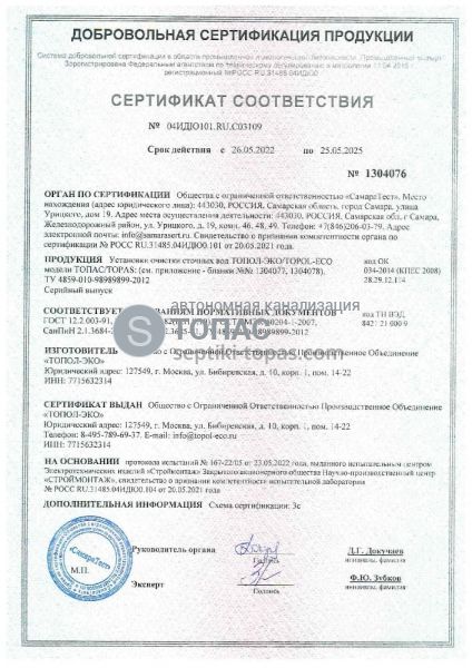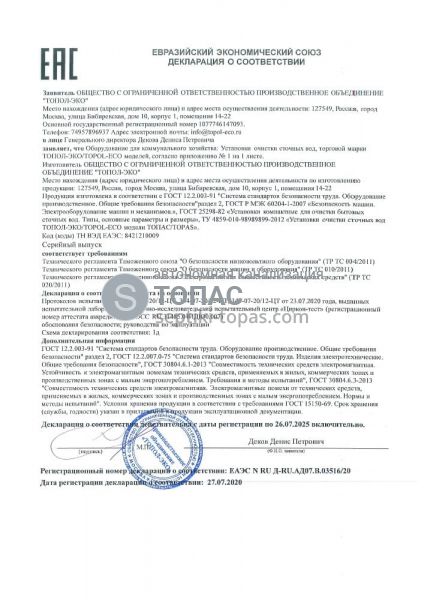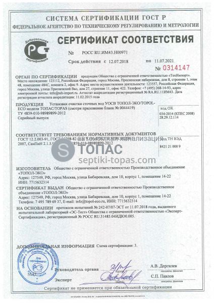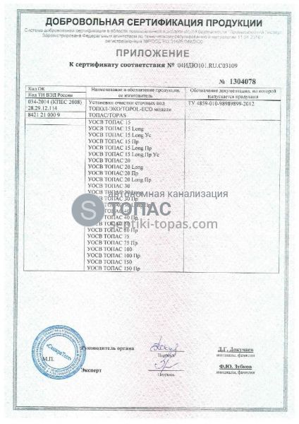 Септик ТОПАС-15 поставляются полностью укомплектованными и готовыми к эксплуатации. Изготавливается и поставляется в едином корпусе. Стандартная комплектация: